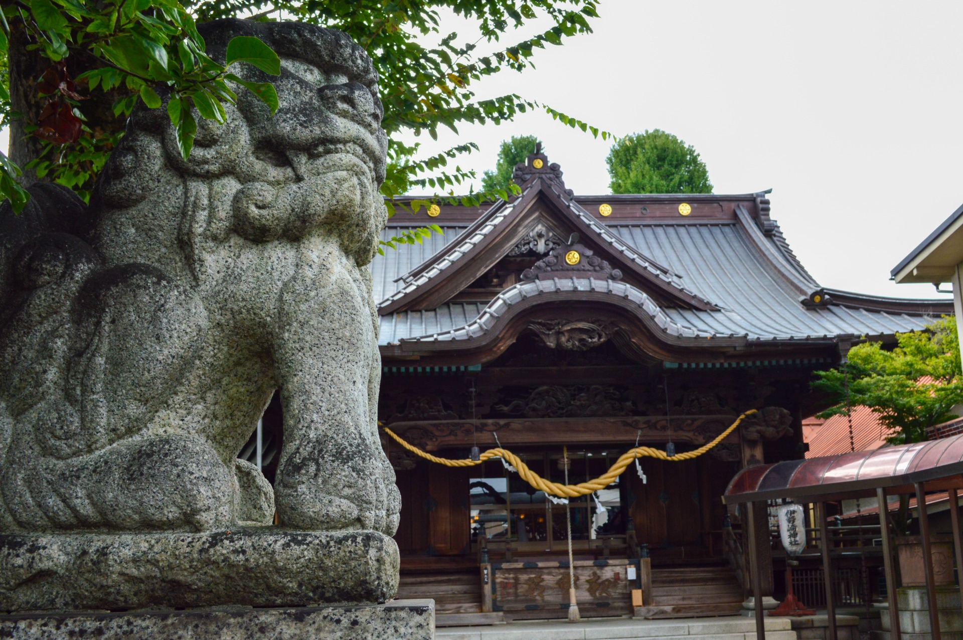 Isesaki Shrine - The current shrine was built in 1848 with the main hall built in 1945. However, some literature suggests that the shrine grounds have been around since the 1300's. The shrines' outer wooden walls are meticulously carved with the façade of the main hall also consisting of a lot of beautiful detail. Upon close inspection, the shrine seems to tell a great story. While the purpose of prayer at Isesaki Shrine can be limitless, the most common subjects here tend to concern childbirth and travel/road safety. The wooden plane propeller above the main hall entrance assists in this. You can even pay to have you car blessed!